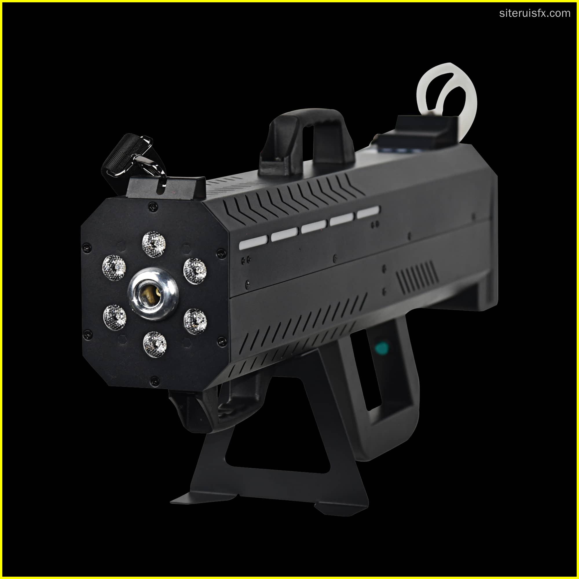 The Siterui SFX 1500W LED Fog Gun is a professional-grade fog machine designed for live events, theaters, concerts, and film production. Combining a powerful 1500W heater with integrated energy-efficient LEDs, this fog gun produces dense, even fog and colorful lighting effects. It warms up quickly and provides consistent output for long shows and repeated use.