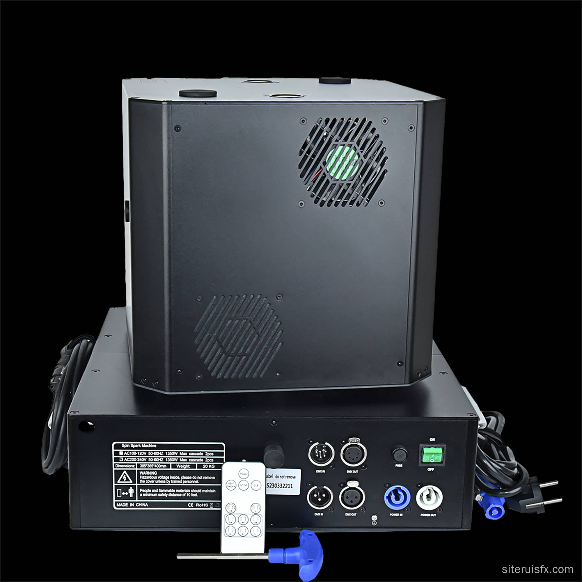 Double head 1300W Spin Spark machine -powerful dual-head 1300W spin spark effect with DMX + remote control for precise timing. Durable, professional-grade pyrotechnic effect ideal for concerts, clubs and events.