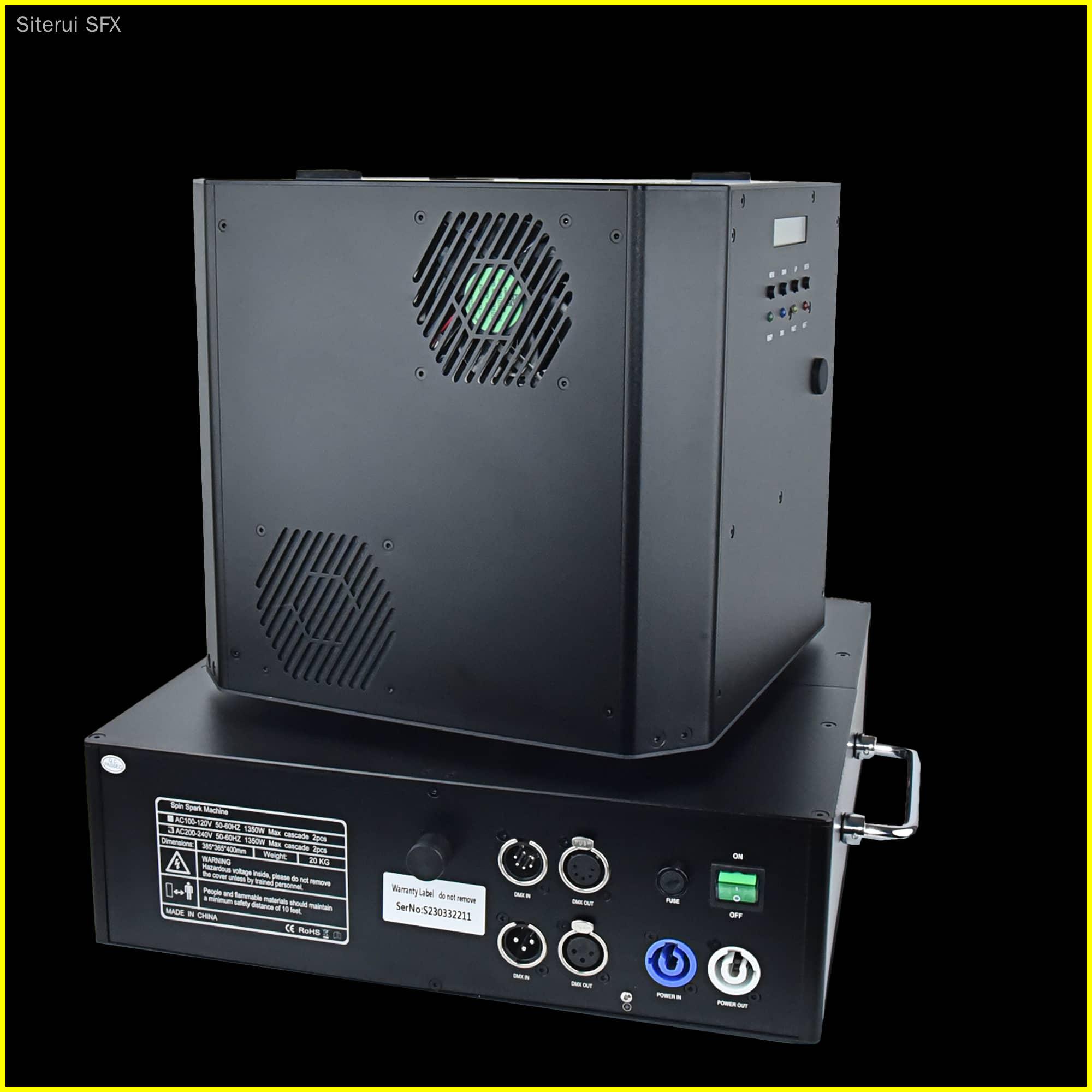 Double head 1300W Spin Spark machine -powerful dual-head 1300W spin spark effect with DMX + remote control for precise timing. Durable, professional-grade pyrotechnic effect ideal for concerts, clubs and events.
